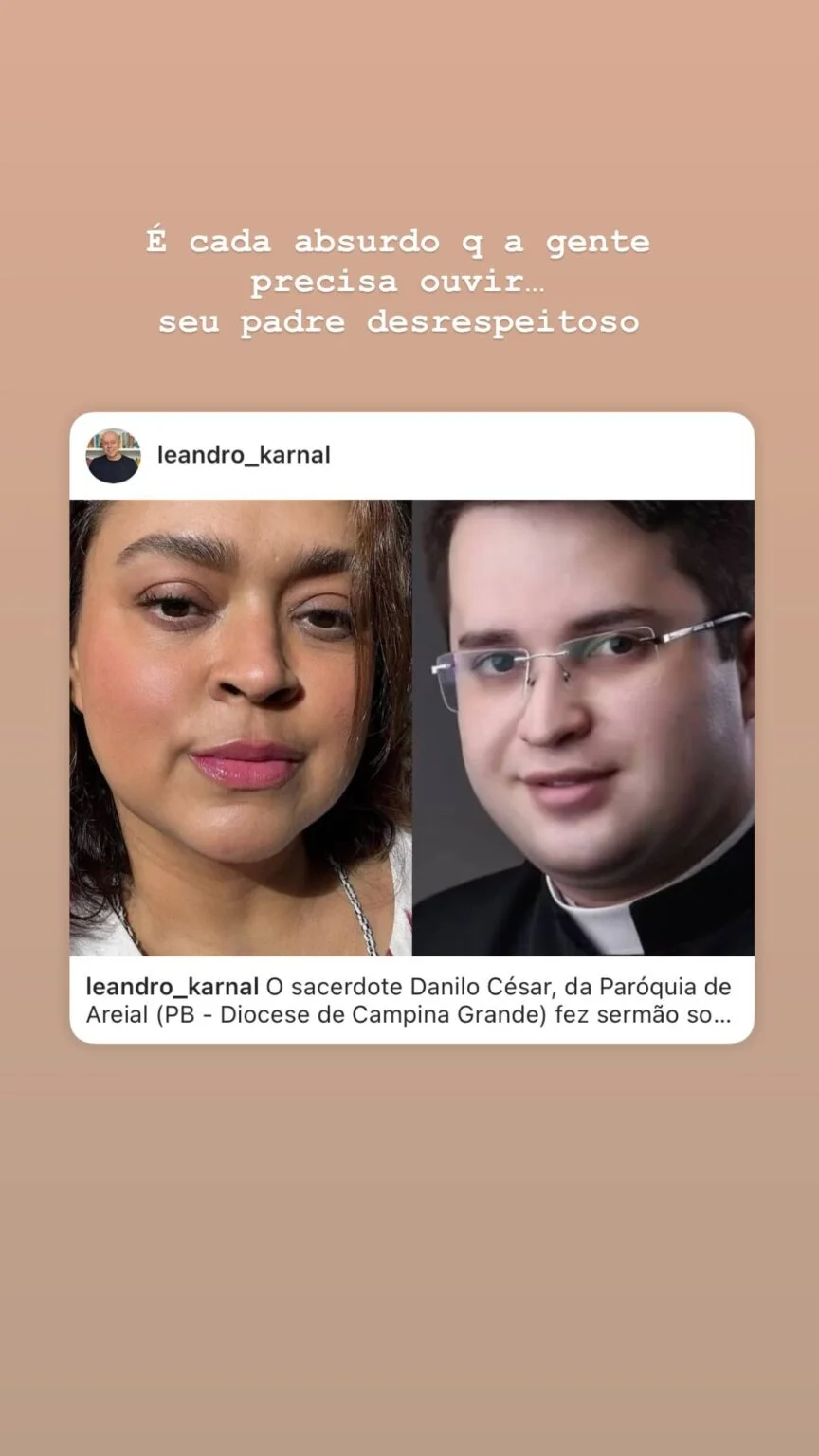 No Instagram, Bela compartilhou o vídeo da crítica do religioso, acompanhado de um texto de Leandro Karnal, que também expressou sua indignação. Na publicação, o historiador declarou: “O sacerdote Danilo César fez sermão sobre a morte de Preta Gil. Argumentou que os orixás não devem possuir força pois… não ressuscitaram a artista. Para o padre, entidades que não conseguem evitar a morte, seriam falsas”.