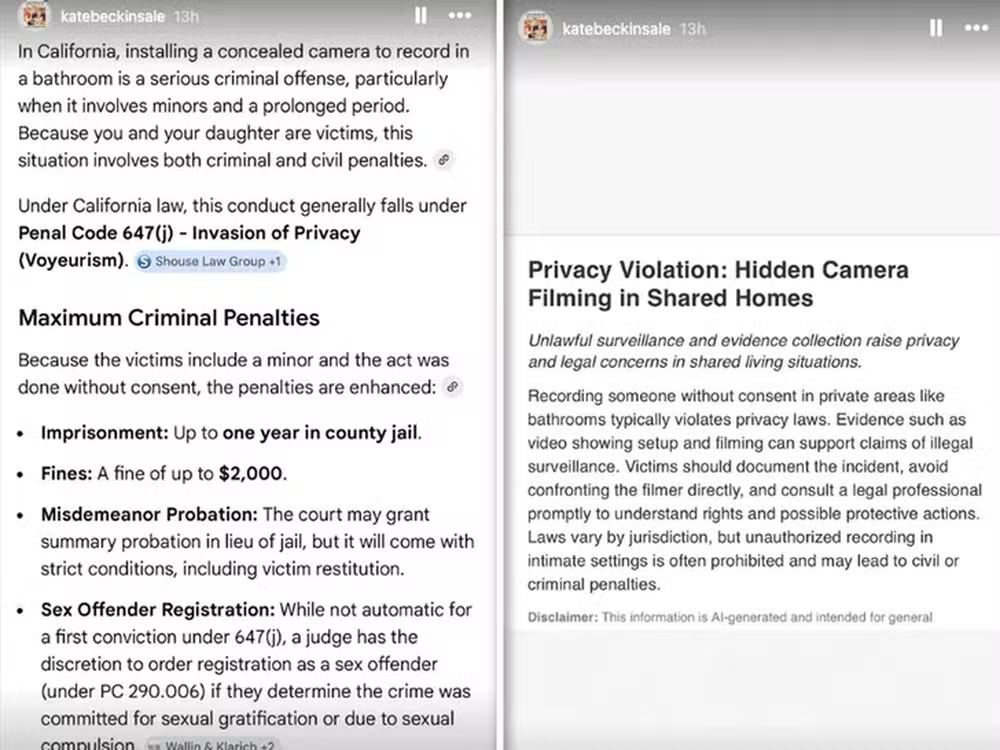 Conhecida por papéis em filmes como Pearl Harbor, Underworld e Van Helsing, a atriz compartilhou imagens com referências a câmeras escondidas, perseguição cibernética e abuso. Entre os conteúdos publicados estavam trechos com informações jurídicas relacionadas à invasão de privacidade e à captação de imagens sem consentimento dentro de residências.