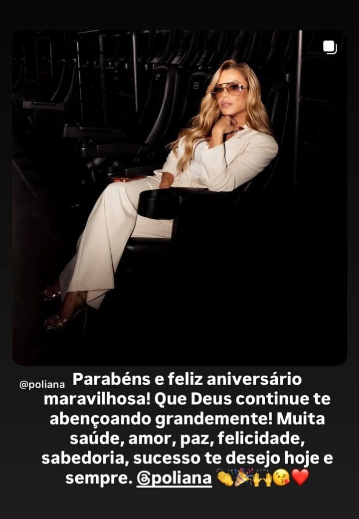 A mensagem foi publicada nos Stories do Instagram de Margareth, que compartilhou uma foto de Poliana acompanhada de palavras afetuosas. O gesto chamou atenção pela boa relação mantida entre as famílias, mesmo após o fim do casamento de Virginia com Zé Felipe.