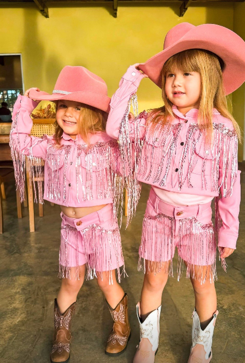 Nas fotos publicadas, as meninas aparecem com um visual todo rosa, repleto de franjas brilhantes, chapéus de boiadeira e botas combinando. Ao fundo, tocava uma música de Zé Felipe e Ana Castela, deixando o momento ainda mais especial.