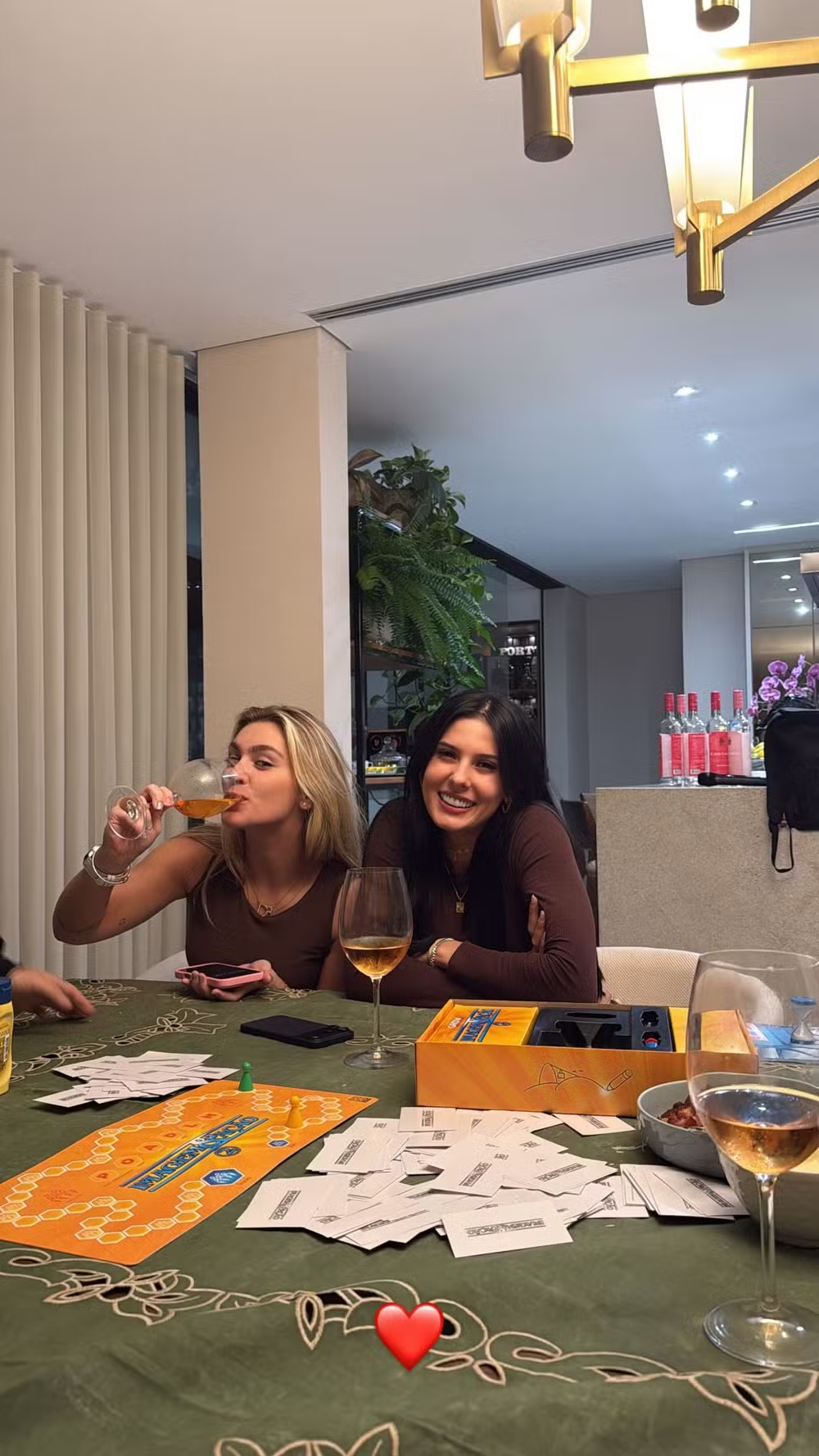 O momento aconteceu durante uma reunião intimista com amigos, marcada por jogos e vinho. Zé Felipe e Ana disputaram uma animada partida de Imagem & Ação, em que a cantora registrou os bastidores nos Stories do Instagram. Ao final, Ana comemorou a vitória do “grupo das meninas”, mostrando a diversão entre todos.